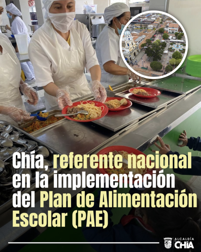 Chía, referente nacional en la implementación del Plan de Alimentación Escolar (PAE) La Unidad Administrativa Especial de Alimentación Escolar (UApA) visitó Chía como parte de su recorrido por el país en el marco de la construcción de la Política Pública de Alimentación Escolar 2022-2026, evidenciando que el municipio es referente con en el Plan de Alimentación Escolar (PAE) que tiene una cobertura del 100%. Además de la cobertura total, el PAE en Chía cuenta con menús nuevos y priorizados, su entrega en las modalidades industrializado y preparado en sitio, con la inocuidad debida, los nutrientes calóricos diarios necesarios para los menores y el logro de asegurar la alimentación escolar, a través de vigencias futuras, hasta el año 2027. Ver Más